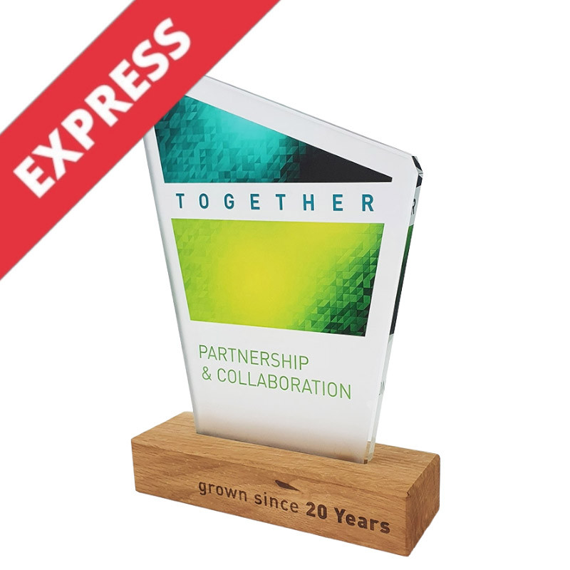 Der Holz Glas Award Premio ist ein absolutes Highlight für Ihren Anlass. Handgefertigtes Glas kombiniert mit Naturholz.