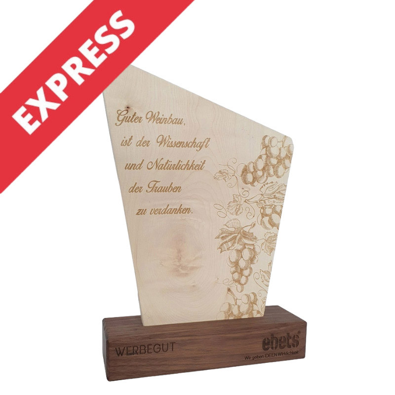 - inkl. individueller Lasergravur auf dem Oberteil und am Holzsockel (max. auf 2 Positionen)
